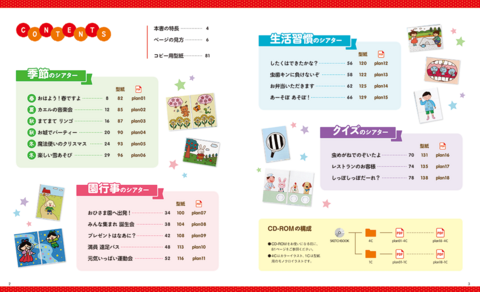 スケッチブックをめくって楽しむ、近年人気の手づくりシアター。本書では幼稚園、保育園向けに、季節のおはなしから、行事、生活習慣まで、14本のシアターのつくり方と演じ方を解説。付録CD-ROMにプリントして使える型紙データを収録するとともに、巻末には拡大コピーして使える型紙も掲載しました。目次