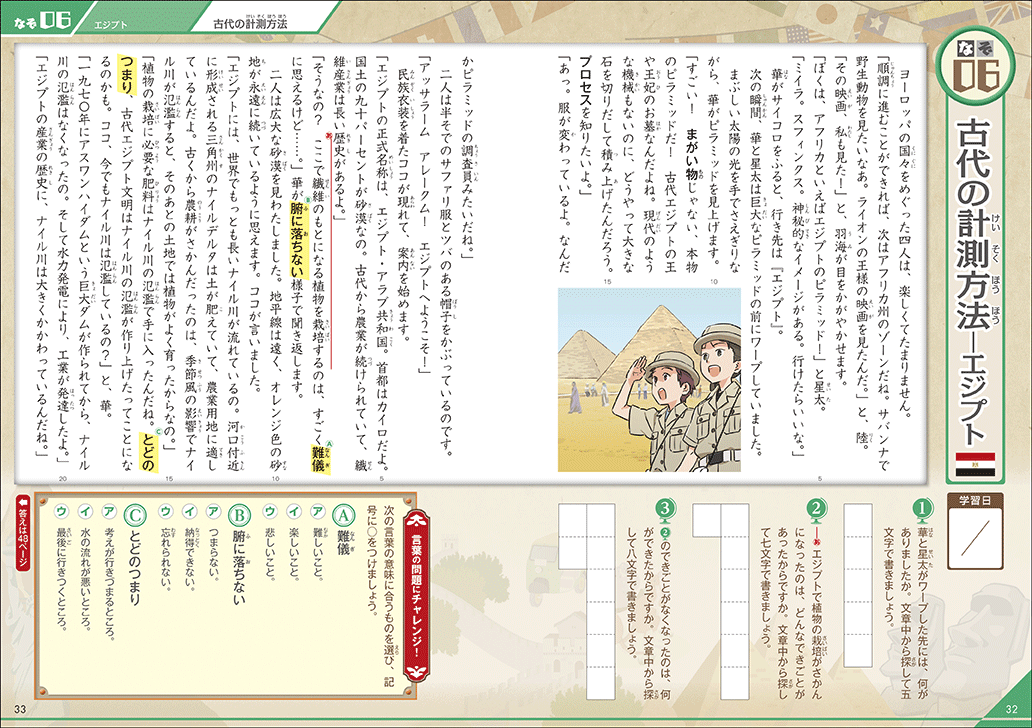 物語を1つ読み終えたら、「言葉」と「世界の国」について復習できる別冊ドリルにチャレンジしてみましょう。