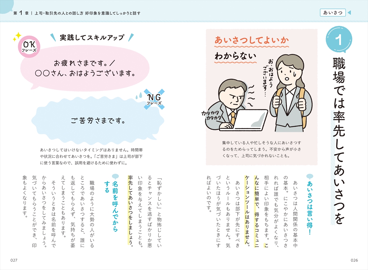 「ビジネススキルは伸ばしたいけれど、ビジネス系の本はなんだか難しそう」と感じる方にもぴったり!会話のポイントはなるべく簡潔に解説し、イラストで視覚的にも理解できるよう工夫しています。また、オールカラーなので見やすく、気楽に読み進められます。