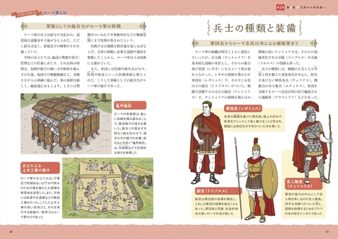 第Ⅰ部では、建国からローマ帝政後期までを4章に分け、その歴史をたどります。数々の戦争による支配拡大、カエサルの遠征や暗殺、アウグストゥスによる巧みな帝政の基盤づくり、のちの世界三大宗教となるキリスト教の公認(ミラノ勅令)など、歴史の転換点はイラストも豊富に添えて、親しみやすく解説しました。キーパーソンは個別の紹介ページも設けてあり、「学生時代は混同して苦労した」と世界史に苦手意識があった人も手に取りやすい1冊です。