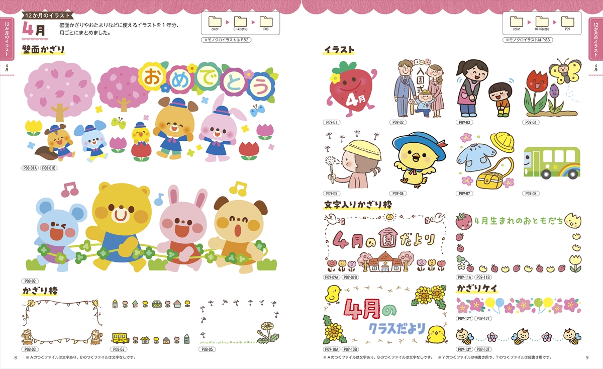 これ1冊で、おたより・壁面・掲示物が迷わず完成!保育の現場で1年中使えるイラスト素材をたっぷり収録!