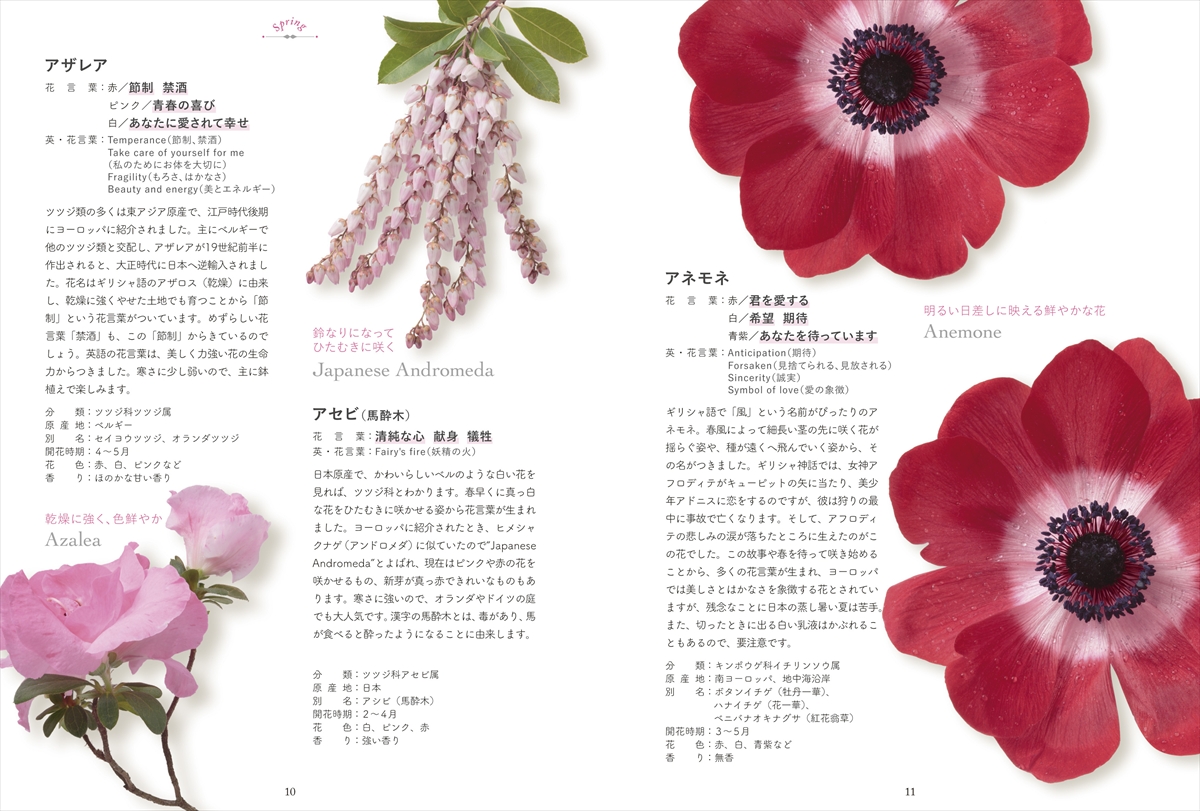 春夏秋冬ごとに、約240種の花と花言葉を掲載した一冊です。