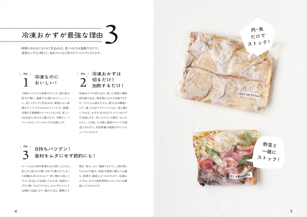 あらかじめまとめて冷凍しておけば、食べたい日は火にかけるだけで晩ごはんが完成!日持ちがよく、節約にもつながる冷凍作りおきレシピをたっぷり掲載しました。